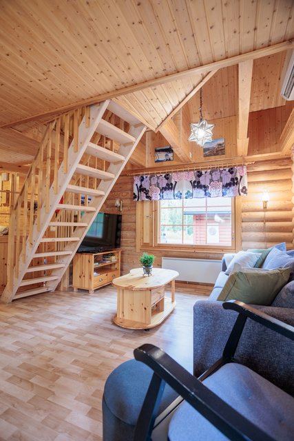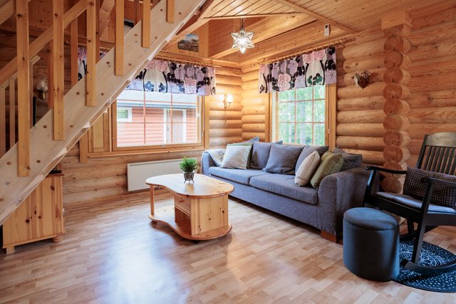Mökin sydämenä toimii tunnelmallinen ja avaraolohuone, jossa varaava vuolukivitakka luo lämpöä ja viihtyisyyttä. Keittiö on suunniteltu lomakokin tarpeisiin, ja siellä on runsaasti tilaa ruoanlaittoon. Pesutiloista löytyy arkea helpottava pukuhuone sekä kylpyhuone Wc:llä ja saunalla, jossa voit nauttia rentouttavista löylyistä luonnonvalon tulviessa sisään ikkunasta.