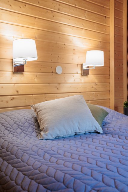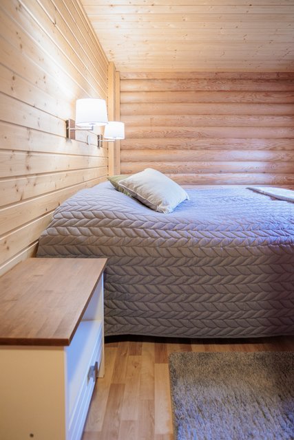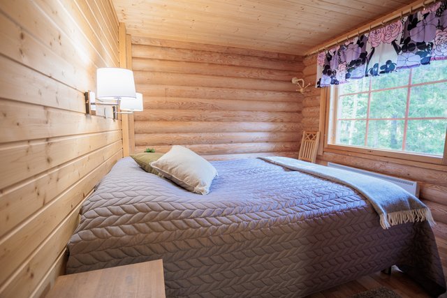 - Päämakuuhuone löytyy mökin alakerrasta ja lisää majoitustilaa on yläkerrassa. Alakerran makuuhuoneessa on myös kaappitilaa, jossa matkatavarat ja petivaatteet voi säilyttää. Yläkerrassa on oma makuutila, joka sijaitsee ihan yläkerran päädyssä tarjoten rauhallisen lepopaikan. Yläkerrassa on myös tilaa lisäsängyille ja/tai vuodesohvalle, mikäli on tarvetta majoittaa suurempia henkilömääriä.