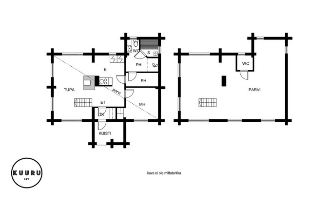 Tupakeittiö, mh, pesuhuone+ wc+ sauna, kodinhoitohuone, parvi + mt