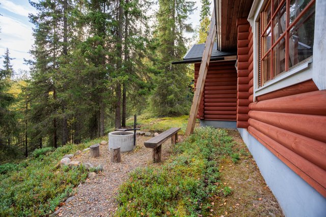 Autotallin suojassa onnistuu niin moottorikelkan kuin muidenkin harrastusvälineiden säilyttäminen kätevästi. Mökin takapihalla on viehättävä tulistelupaikka, josta avautuvat upeat näkymät ympäröivään luontoon. Tämä on täydellinen paikka viettää iltaa ystävien tai perheen kanssa nuotion äärellä.
