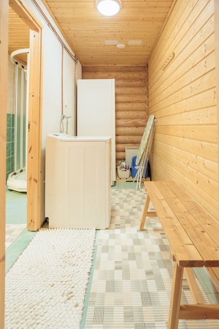 - Kodinhoitohuone sijaitsee alakerrassa ja toimii myös pukuhuoneena pesutiloihin mentäessä. Tilaa on hyvin kumpaankin tarkoitukseen.