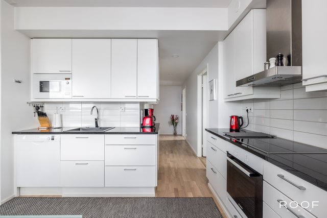 - Jääkaappi, erillinen pakastin, uuni, liesi, liesituuletin, mikroaaltouuni, ja astianpesukone