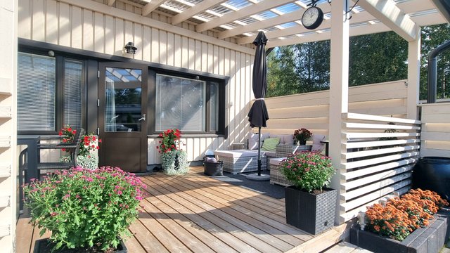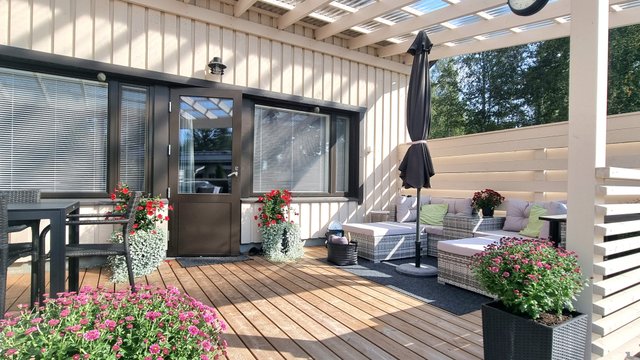 - 2023 on tehty jokaiseen asuntoon hienot takaterassit valokatteella.