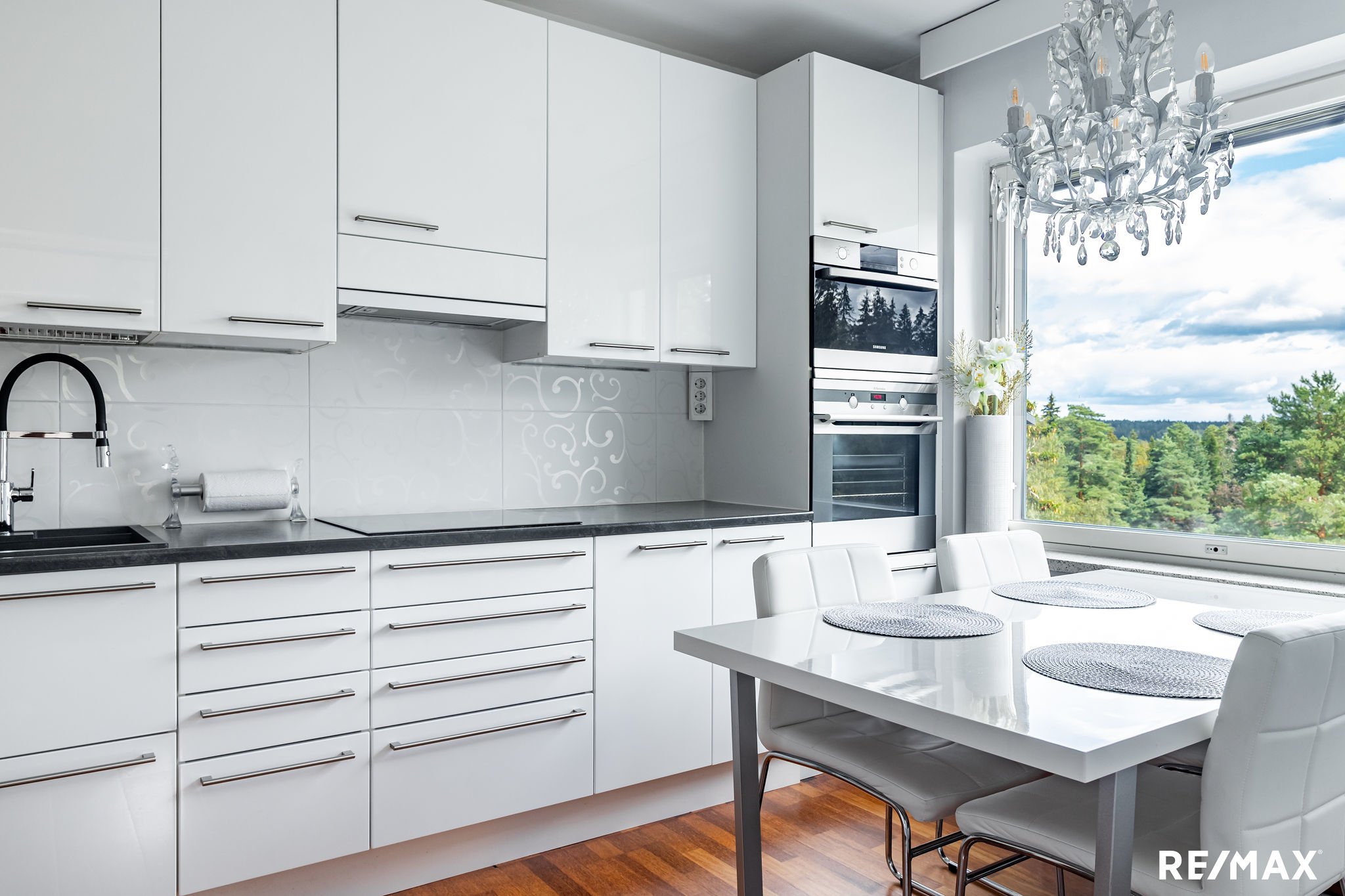Keittiö on hyvin varusteltu, ja siellä on kaikki tarvittava arjen helpottamiseksi, kuten astianpesukone ja induktioliesi. Kylpyhuoneessa on lattialämmitys, mikä tuo mukavuutta kylmiin talviaamuihin. Asuntoon kuuluu myös tilava säilytysullakko, joka tarjoaa runsaasti säilytystilaa.