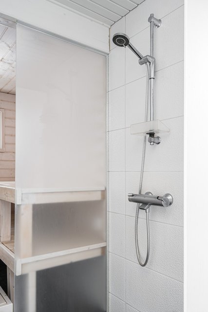 Khh,kph ja sauna sijaitsevat myös asuinkerroksessa ja ne ovat myös saaneet uuden nykyaikaisen ja modernin ilmeen remontin yhteydessä.