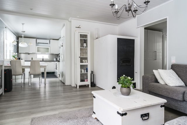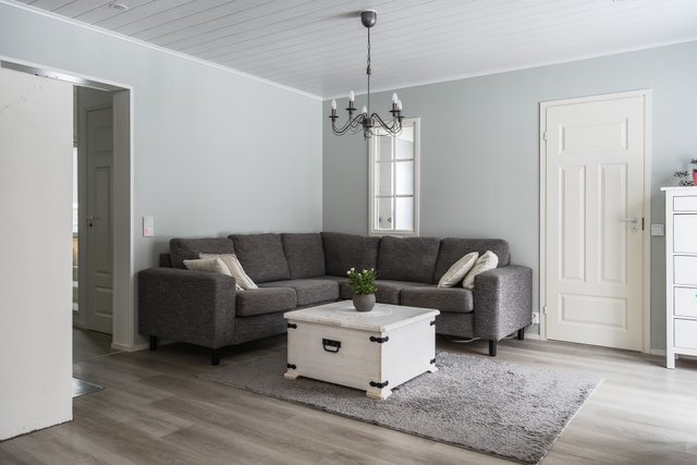Tässä kodissa on hyvä tunnelma ja kodikkaat materiaalit, joiden ansiosta täällä on myös helppo ja hyvä viihtyä, sekä rentoutua kiireellisten työpäivien jälkeen.
