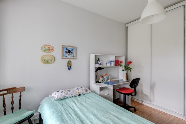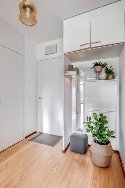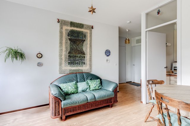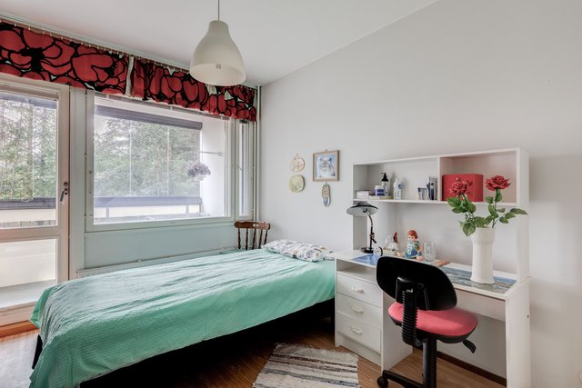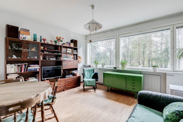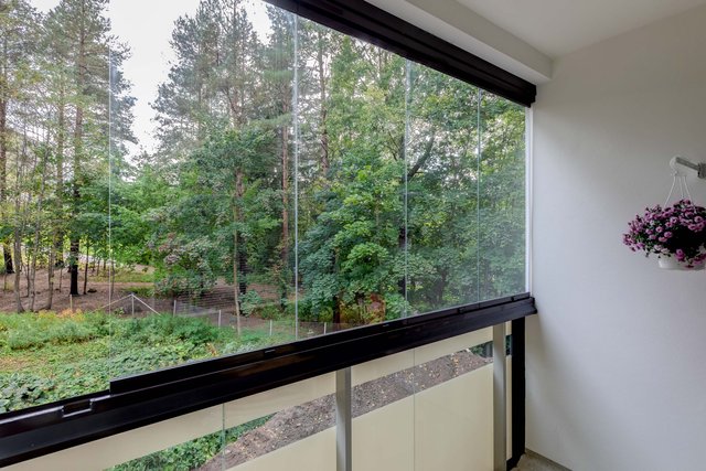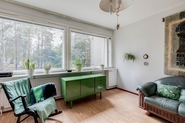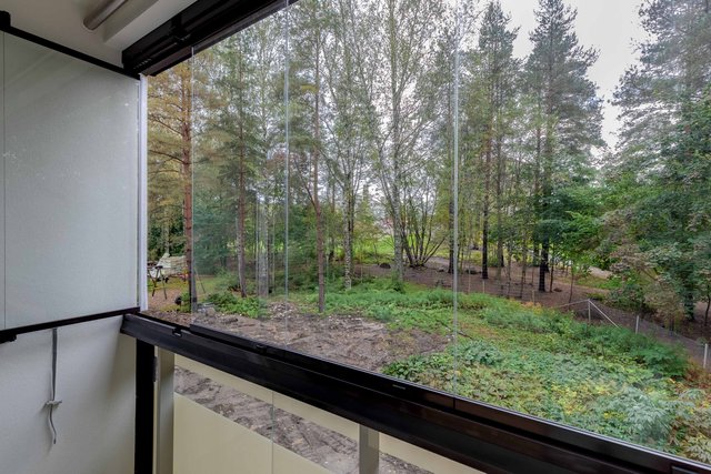 Asunto on toisessa kerroksessa, ja siinä on lasitettu parveke, josta avautuvat näkymät rauhalliselle sisäpihalle. Tämä tuo asuntoon runsaasti luonnonvaloa ja luo viihtyisän tunnelman. Asunnon pohjaratkaisu on erittäin hyvä ja neliöitä tuntuisikin olevan jopa enemmän.