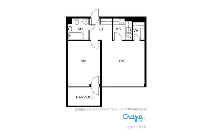 Erittäin hyvän pohjaratkaisun omaava kaksio.