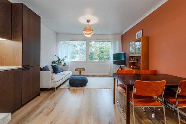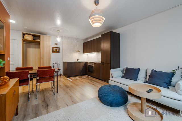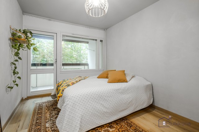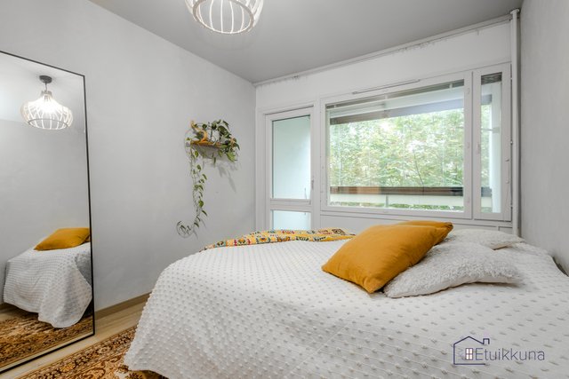 Asunnon olohuone ja avokeittiö muodostavat toimivan ja kutsuvan kokonaisuuden, jossa suuret ikkunat tuovat runsaasti luonnonvaloa. Keittiö on remontoitu vuonna 2023 ja tarjoaa modernit puitteet ruoanlaittoon. Makuuhuoneessa on tilaa niin parivuoteelle kuin pienelle työpisteellekin. Huoneesta on käynti sille juuri valmistuneelle, kauniille parvekkeelle, joka avautuu etelään ja tuo makuutilaan pientä ylellisyyttä.