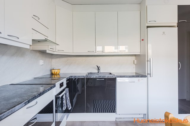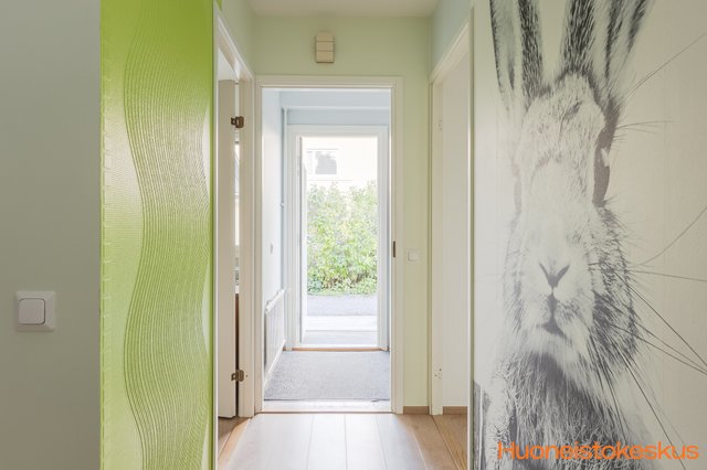 Asunnossa on kolme huonetta, keittiö ja sauna. Pieni piha avautuu lounaaseen ja siellä voit nauttia ulkoilmasta katetulla patiolla. Toimiva keittiö helpottaa arjen askareita, tilava kylpyhuone tuo mukavuutta ja erillinen wc lisää käytännöllisyyttä.