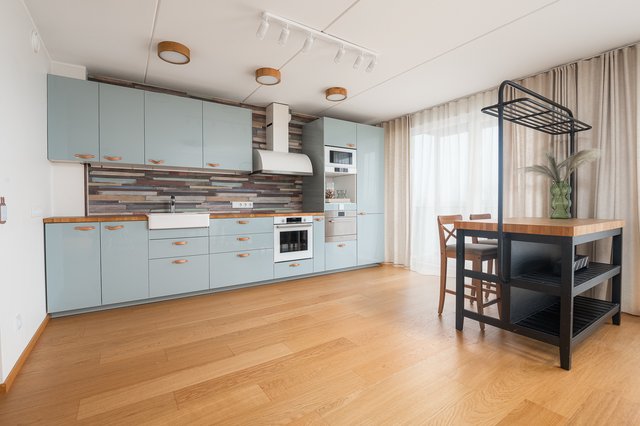 - Jääkaappipakastin, uuni, liesi, liesituuletin, ja astianpesukone