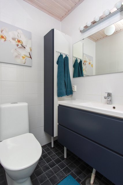 Kylpyhuone ja sauna on remontoitu syyskuussa 2025, ja talosta löytyy lisäksi kaksi erillistä wc:tä. Kodinhoitohuone omalla uloskäynnillä tekee arjen pyörittämisestä helppoa ja käytännöllistä.
