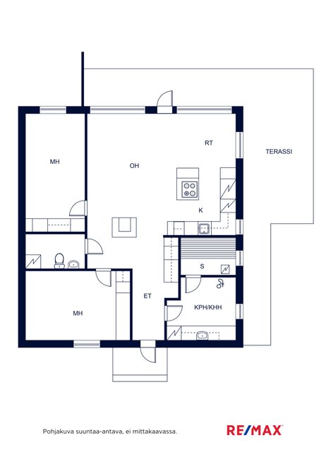 - Eteisestä kulku käyttöullakolle. Tikapuut/portaat saa vedettyä alas.
