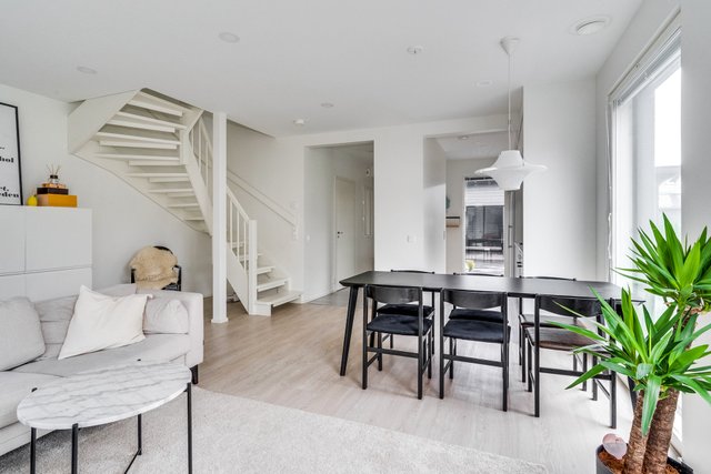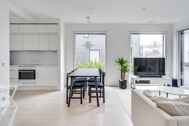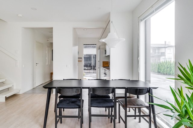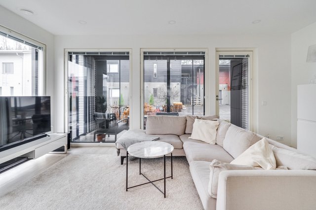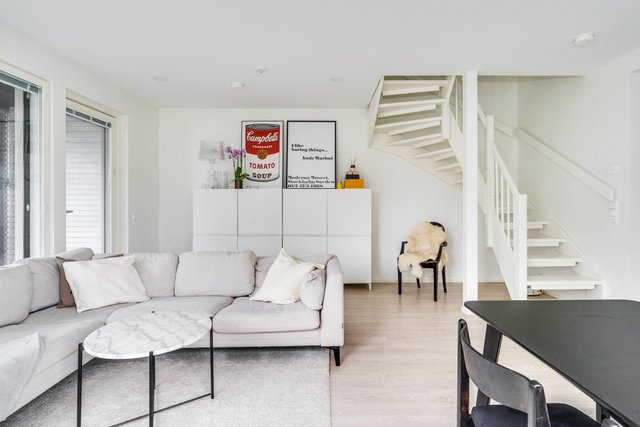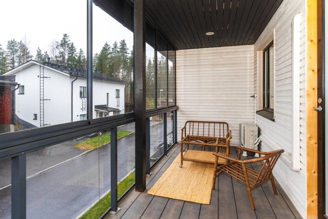 Nyt vapautumassa valoisa paritalokoti. Asunto tarjoaa tilojensa ja pohjaratkaisun osalta vastinetta tämän päivän toiveisiin. Keittiössä on paljon kaappi- sekä laskutilaa ja keittiön yhteyteen saa mahtumaan suuremmankin ruokapöydän. Olohuoneeseen mahtuu kunnollinen sohvaryhmä ja olohuoneesta on kulku asunnon lasitetulle terassille, missä nautit pimenevistä illoista pitkälle syksyyn. Asunnossa on suuret lattiasta kattoon olevat ikkunat, jotka lisäävät tilantuntua entisestään. Alakerrasta löytyy myös huoneiston sauna- ja kylpyhuoneosasto, jossa on tilaa kodinhoidolle.