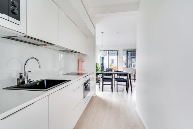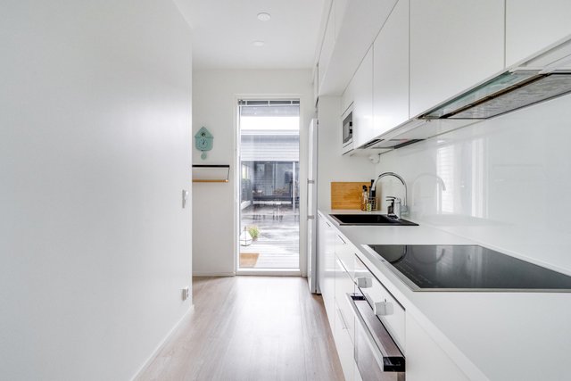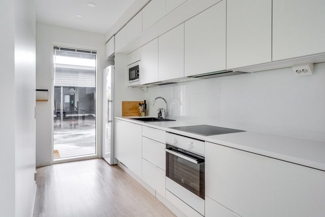 - Keittiössä paljon kaappi- ja laskutilaa. Keittiön yhteyteen mahtuu suurempikin ruokailuryhmä. Lattia: vinyyli Seinät: maali Pöytätaso: laminaatti Varustus: jääkaappi, uuni, induktioliesi, liesituuletin, integroitu mikroaaltouuni ja astianpesukone.