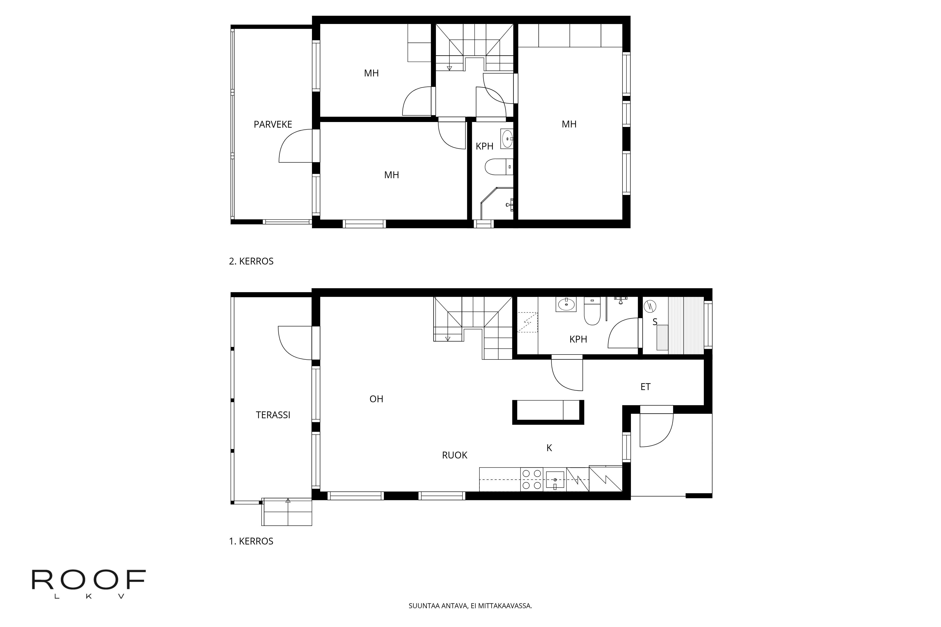 - Muissa tiloissa ilmoitettu puolet talousrakennuksen huoneistoalasta (autokatos ja varasto). Pinta-alatiedot on saatu rakennuslupapiirustuksista eikä niitä ole tarkistusmitattu.