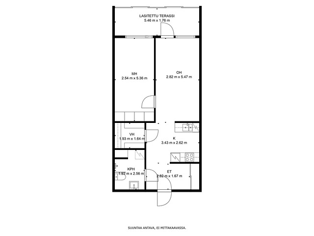 Tämä toiminnaisella pohjaratkaisuilla toteutettu kaksio 2017 valmistuneessa Asunto-osakeyhtiö Korkeavuoressa, Michailowinkadulla Kakolassa tarjoaa kodikasta ja mukavaa asumista rauhallisessa ympäristössä. Asunnon olohuoneessa on isojen ikkunoiden ansiosta runsaasti valoa. Keittiö on modernisti varusteltu, ja siellä on kaikki tarvittava ruoanlaittoon. Makuuhuone on viihtyisä ja tarjoaa hyvät säilytystilat. Asunnossa on myös tilava vaatehuone. Asunnon vaaleansävyinen kylpyhuone on tilava ja toiminnallinen.