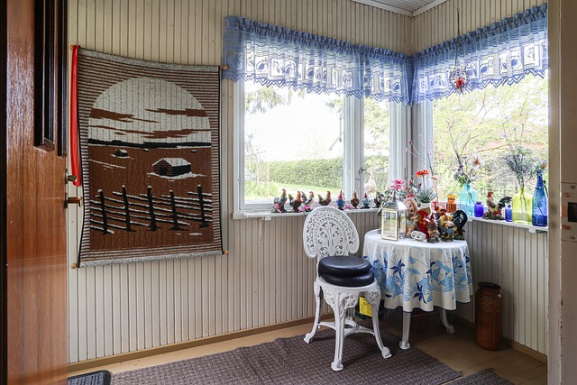- Laatoitetut lattiat ja seinät. Maalattu levykatto.