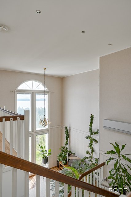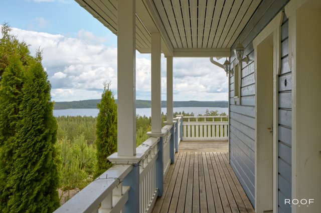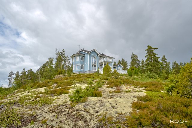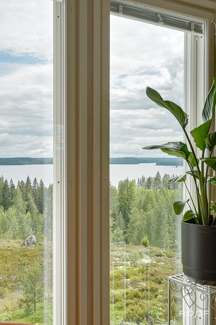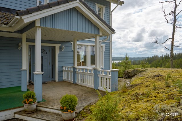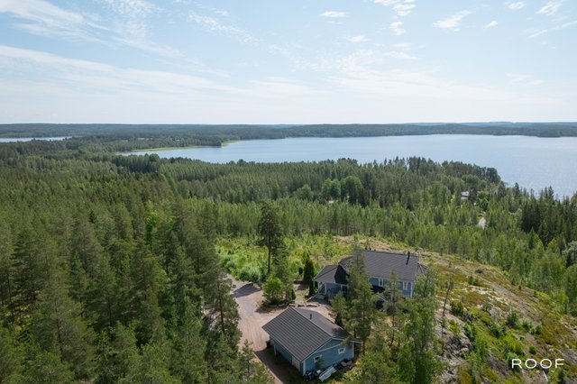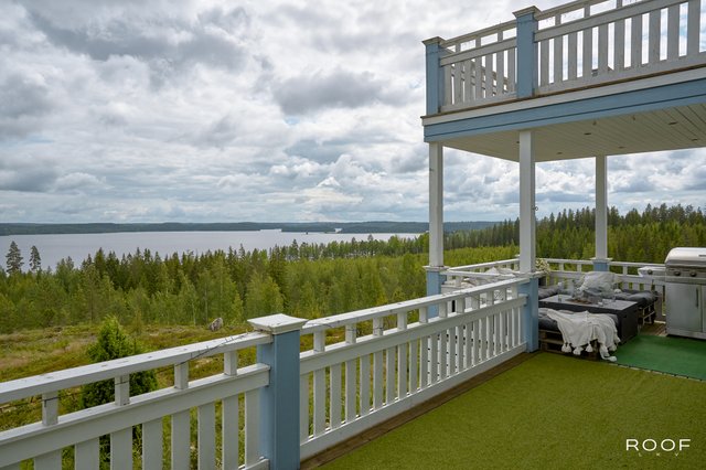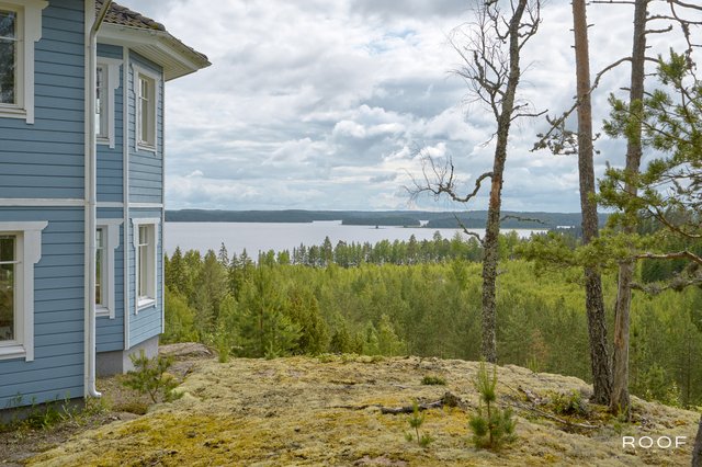 Ainutlaatuinen kokonaisuus korkealla, 50 metriä korkean kallion laella Herrala Talojen arkkitehdin suunnittelema linnamainen omakotitalo, josta avautuvat henkeäsalpaavat näkymät yli Valkealan järvien.