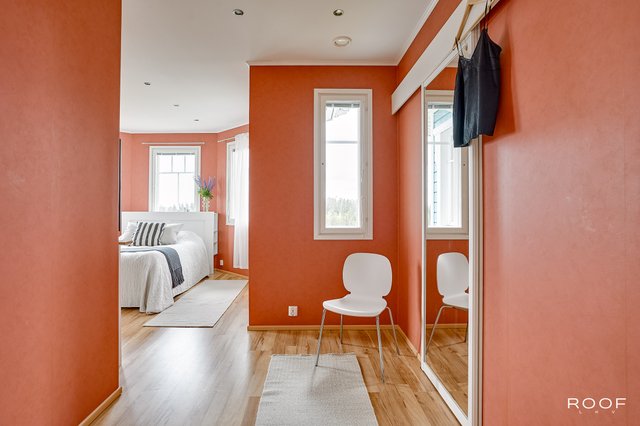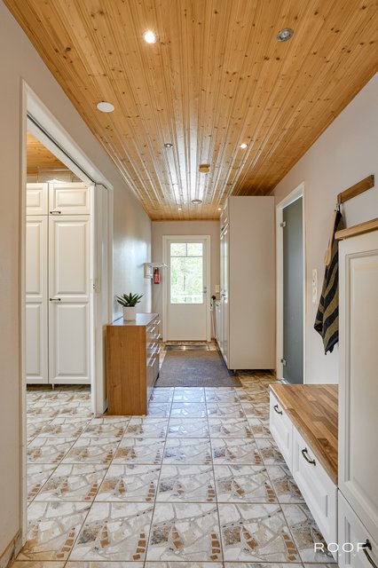 - Ullakko, vaatehuone, lämmin ulkovarasto ja seinäkaapit