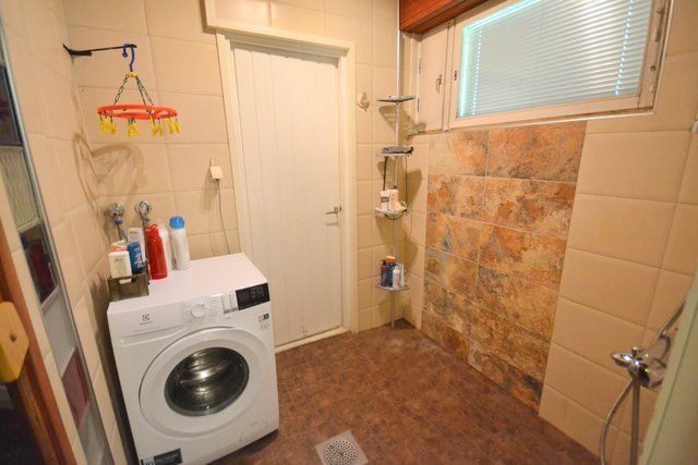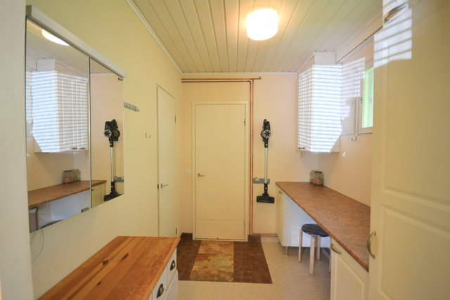 - Pesukoneliitäntä, pyykkikaapit, ja pöytätaso