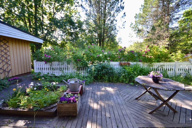 - Kaunis vehreä puutarha. Monivuotisia perennoja, pensaita, marjapensaita.