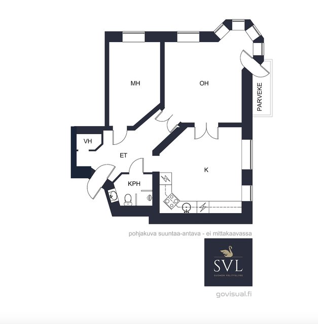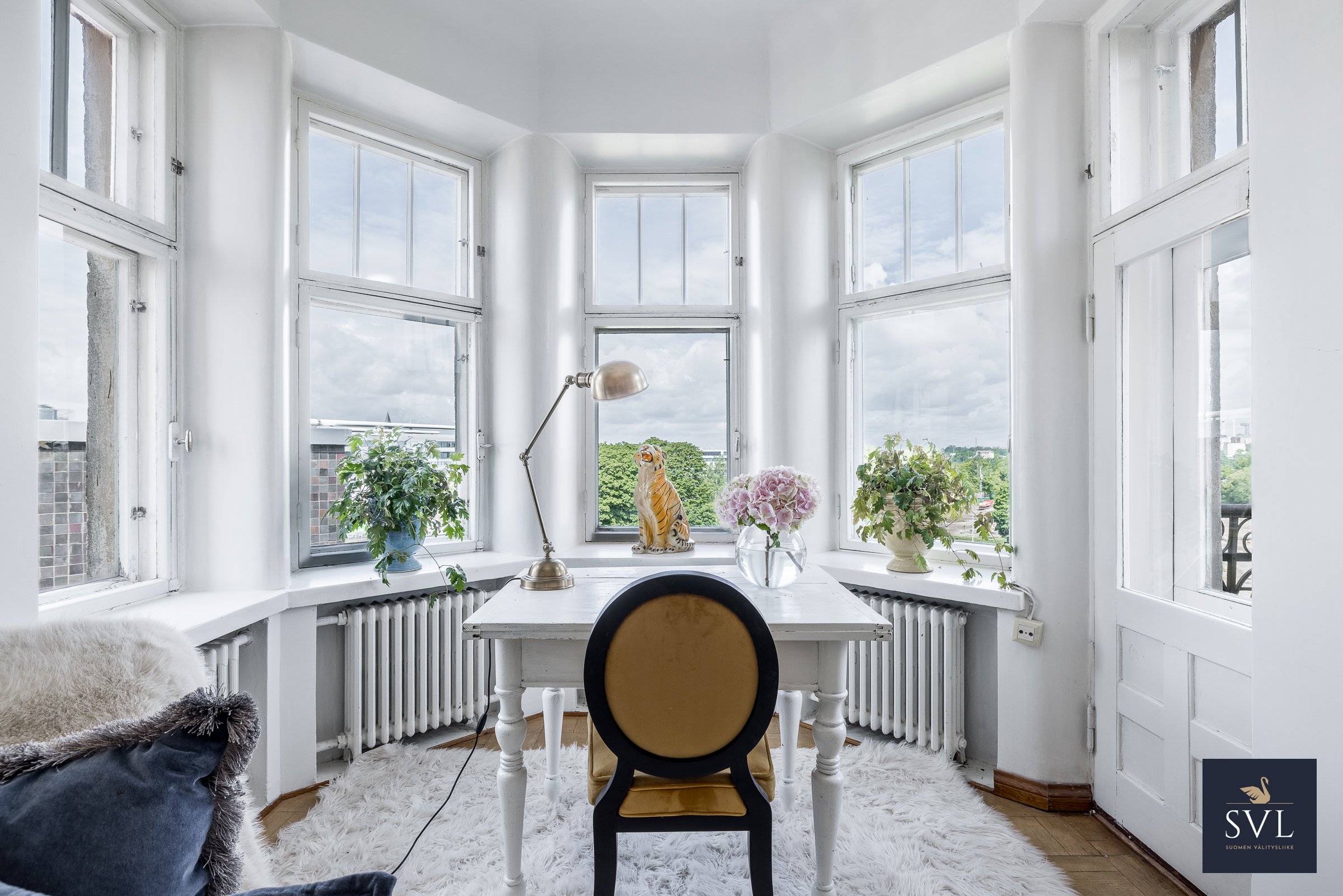 Kodin ehdoton helmi ja keskipiste on kaunis olohuoneen kulmaerkkeri. Olohuneesta on käynti omalle parvekkeelle, jossa nautit aamukahvit ja ihastelet iltaisin auringonlaskua. Suuret ikkunat kahteen ilmansuuntaan tuovat valtavasti valoa tähän huoneistoon. Korkea huonekorkeus mahdollistaa esimerkiksi parviratkaisujenkin käytön. Erilliseen keittiöön mahtuu suuri ruokapöytä ja koko perhe koolle. Kylpyhuone on juuri remontoitu.