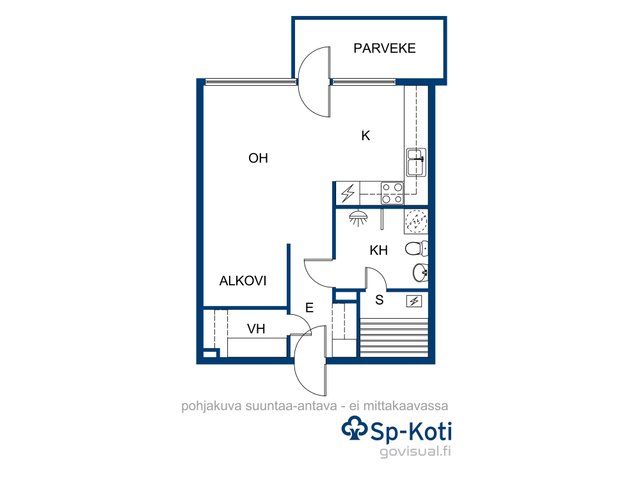 Asunnossa on avara avokeittiö, joka yhdistyy olohuoneeseen luoden viihtyisän ja toimivan kokonaisuuden. Alkovi tuo kodikkuutta ja mahdollistaa selkeän makuutilan. Oma sauna ja parveke lisäävät asumismukavuutta.
