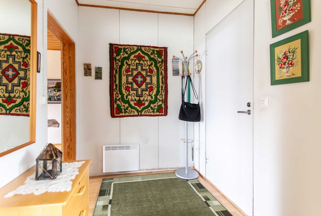 Asunnossa on kolme makuuhuonetta, tilavan olohuoneen vieressä erillinen keittiö. Kylpyhuone on hiljattain remontoitu, ja sieltä löytyy lattialämmitys. Kylpyhuoneen ja wc:n viemäri on uusittu.
