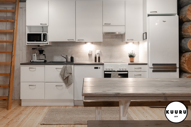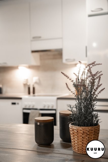 Huoneiston sydän on avara tupakeittiö, jossa jykevöt keloseinät ja upea luonnonkivitakka luovat lämpimän ja kutsuvan tunnelman. Sohvalle loikoillessa mieli lepää ja arjen kiireet jäävät taakse. Keittiö on uudistettu nykyaikaiseksi ja tarjoaa erinomaiset puitteet kokkailuun ja yhdessäoloon. Ikkunoista avautuvat rauhoittavat näkymät taloyhtiön vehreälle pihalle ja ympäröivään metsään, joka tuo luonnon osaksi tilaa.