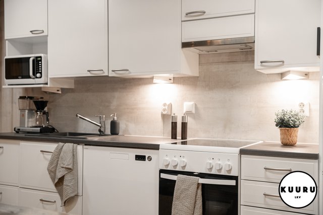 - Nykyaikainen ja tyylikäs, vaaleasävyinen keittiö tarjoaa runsaasti tilaa kokkailuun ja yhdessäoloon. Selkeälinjainen ilme ja toimiva varustelu tekevät ruoanlaitosta helppoa ja miellyttävää.