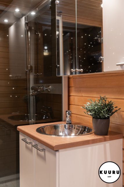 - Tyylikkäästi vuonna 2008 remontoidut pesutilat tarjoavat raikkaan ja ajattoman ilmeen. Tilojen yhteydessä on sauna sekä toinen wc-istuin, mikä lisää asumisen mukavuutta ja käytännöllisyyttä.