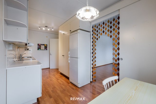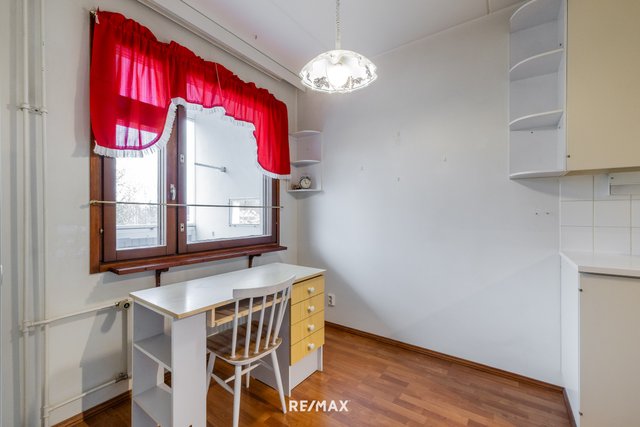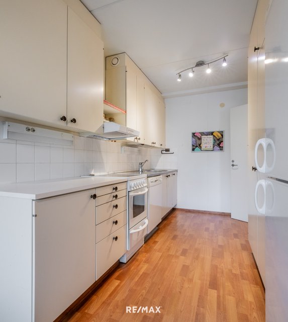 Keittiössä on keraaminen liesi, jääkaappipakastin ja astianpesukone sekä tilaa ruokapöydälle. Kylpyhuone on remontoitu ja siinä on lattialämmitys sekä pesukoneliitäntä. Kaksi makuuhuonetta tarjoavat tilaa perheelle tai työhuoneelle.