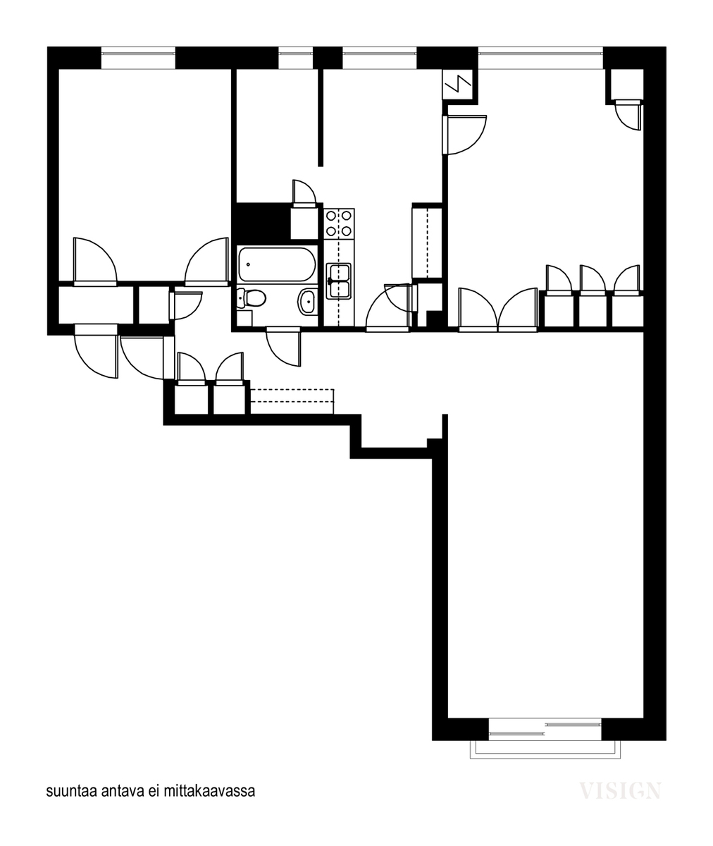 Kahden makuuhuoneen lisäksi erillinen tilava keittiö, josta näkymät Vaasankadulle.