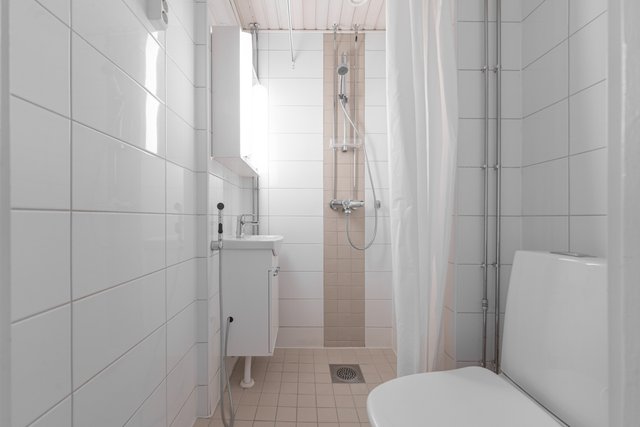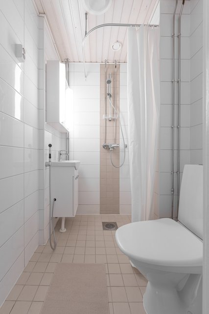 - WC-istuin, suihku, pesuallas, ja peilikaappi