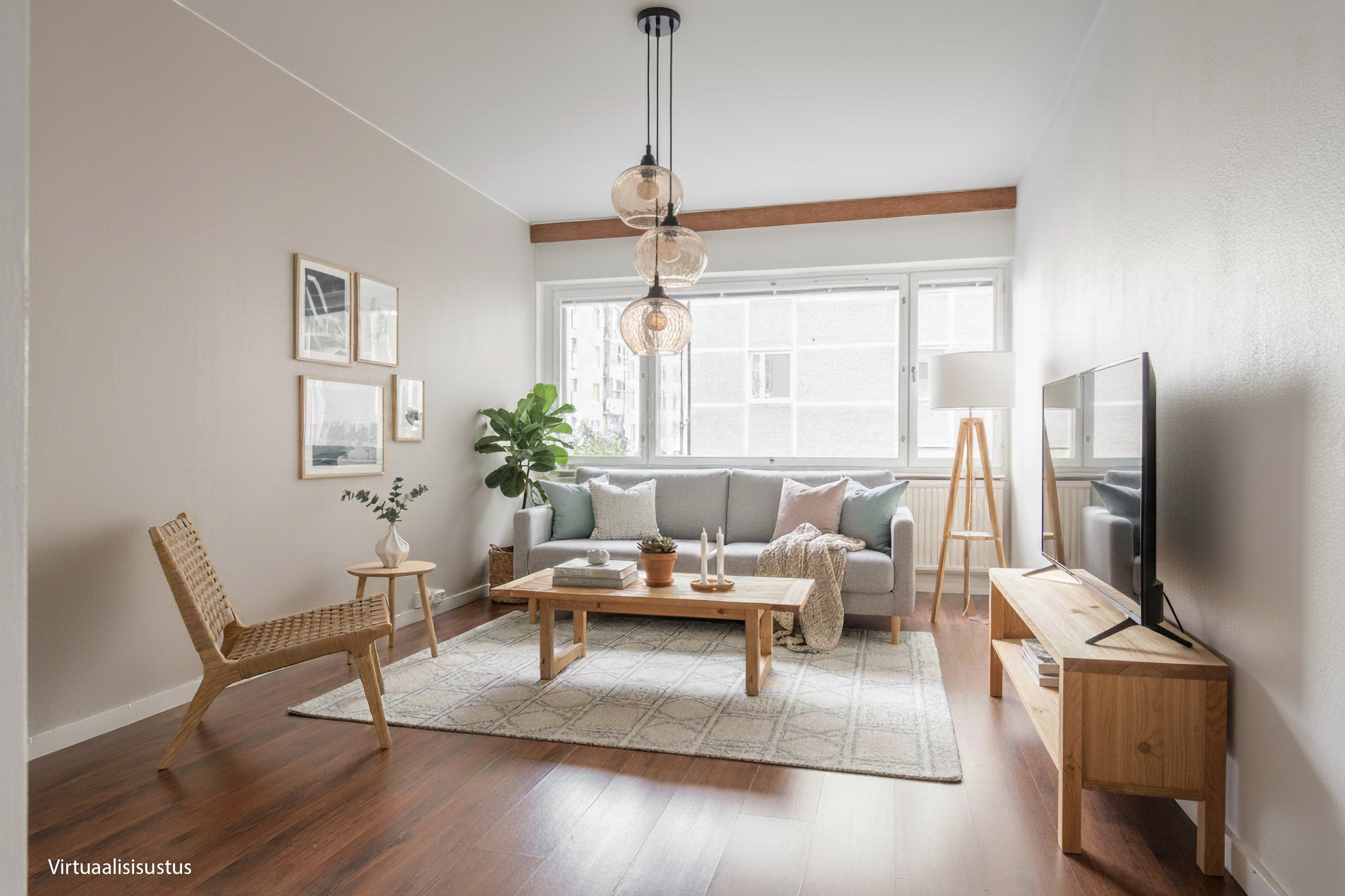 Tämä hyvin hoidettu putkiremontoitu taloyhtiö seisoo omalla tontilla. Myös huoneisto on siistissä kunnossa ja sitä on remontoitu hyvällä maulla säilyttäen 60-luvun yksityiskohtia. Olohuone ja makuuhuone ovat erillisiä tiloja, mutta niiden välillä on aikoinaan ollut oviaukko. Keittiö on tilava ja hyvin varusteltu. Kodista löytyy reilusti säilytystilaa mm. kahden vaatehuoneen ansiosta. Myös taloyhtiöstä löytyy monipuoliset remontoidut tilat aina saunaosastosta pyykkitupaan saakka, joten asuminen ja arki on vaivatonta.