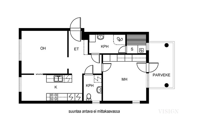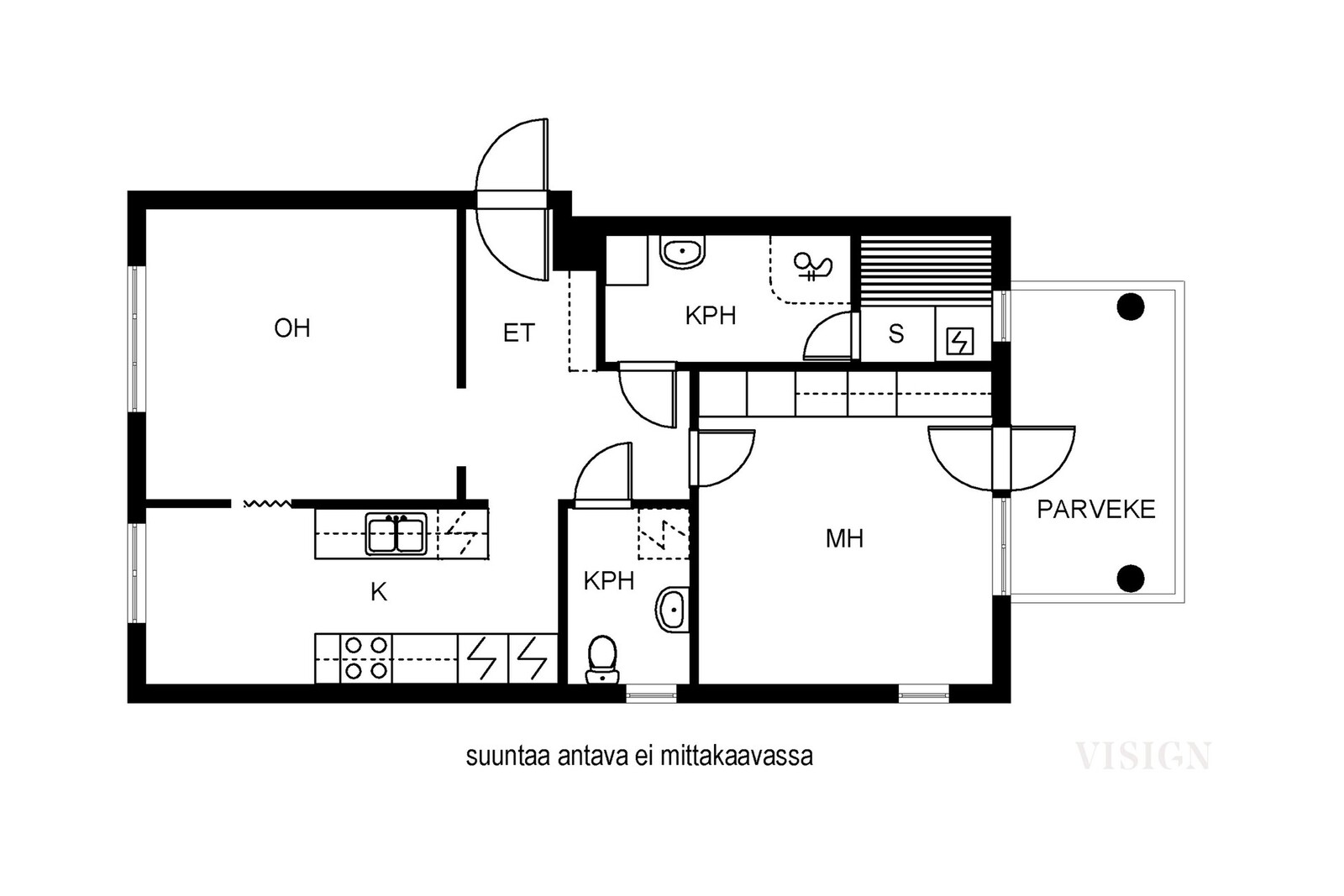 - Mainittu pinta-ala saattaa tämän ikäisessä kohteessa poiketa olennaisesti nykyisten standardien mukaan laskettavasta asuinpinta-alasta. Todellinen asuinpinta-ala voi olla yhtiöjärjestyksessä, isännöitsijäntodistuksessa ja esitteessä mainittua pienempi tai suurempi.