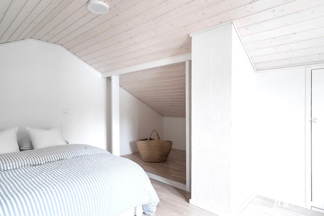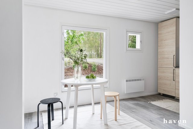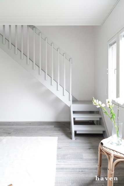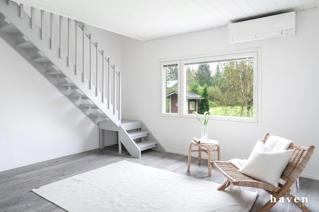 - Tilava olohuone josta portaat yläkertaan jossa yksi makuuhuone sekä säilytystilaa.