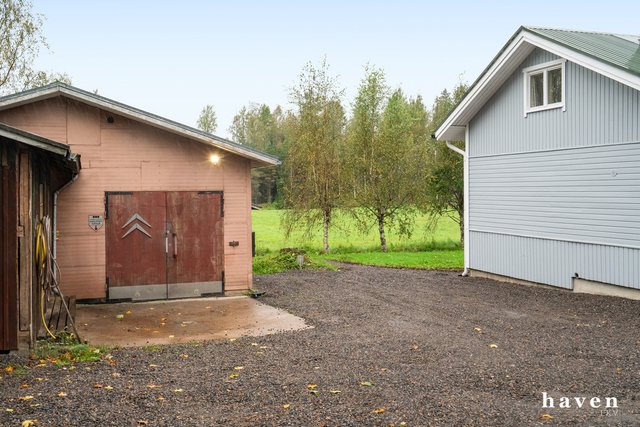 Iso 61 neliön autotalli (lämmitys ilmalämpöpumpulla) sekä varastotilaa.