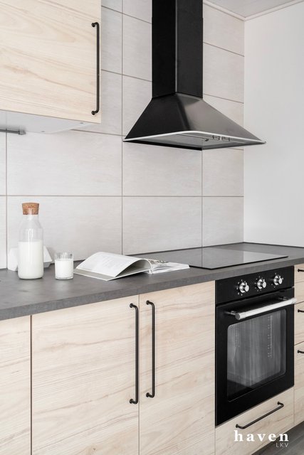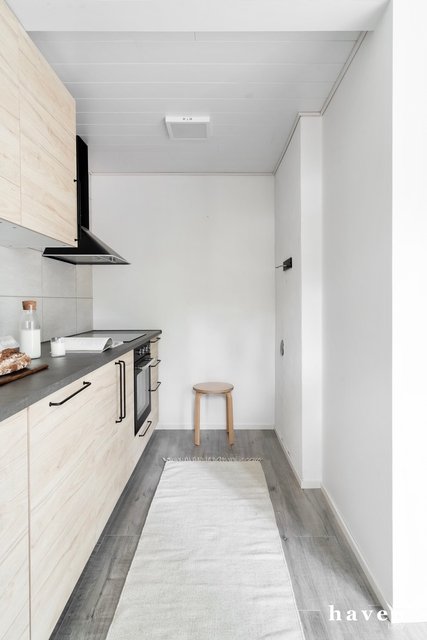 - Jääkaappi/pakastin, induktiokeittotaso, erillisuuni, liesituuletin (aktiivihiili), astianpesukone. Uusittu 2025.