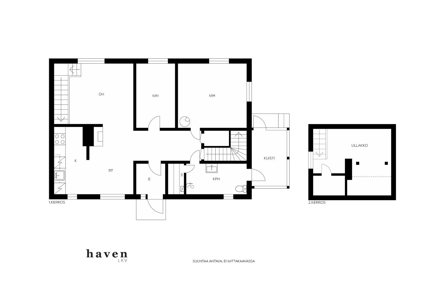 - Alakerrassa kaksi kivankokoista makuuhuonetta, joista toisessa tunnelmallinen pönttöuuni. Yläkerrassa yksi makuuhuone.