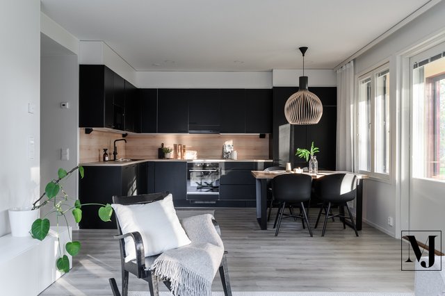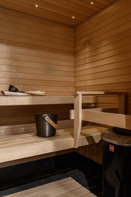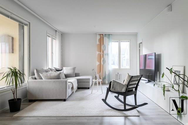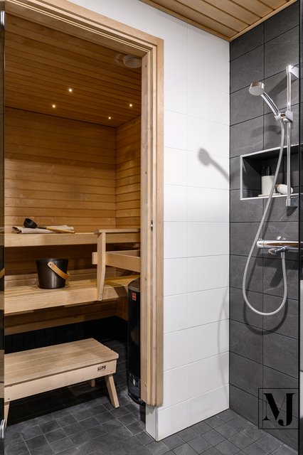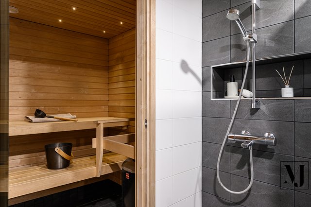 Avoin ja tilava keittiö on varusteltu laadukkailla kodinkoneilla, mikä tekee ruoanlaitosta vaivatonta ja mukavaa. Modernissa kylpyhuoneessa on ajattomat kalusteet, ja saunassa pääsee rentoutumaan kiukaan lämmössä. Asunnossa on kaksi wc:tä, mikä lisää arjen sujuvuutta.