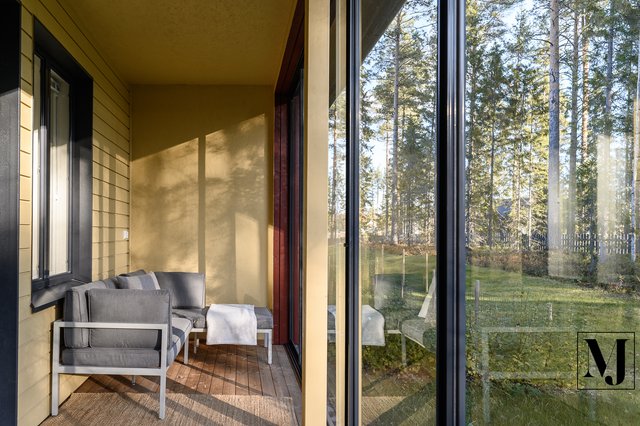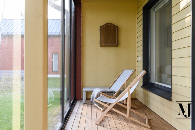 Suuri lasitettu terassi tarjoaa ihanteellisen paikan nauttia pimenevistä syysilloista ja luonnon rauhasta. Asuntoon kuuluu myös oma vaatehuone ja hyvän kokoinen ulkovarasto, jotka tarjoavat runsaasti säilytystilaa. Autokatospaikka on mahdollista ostaa erikseen, ja sähköauton latausmahdollisuus on järjestettävissä.