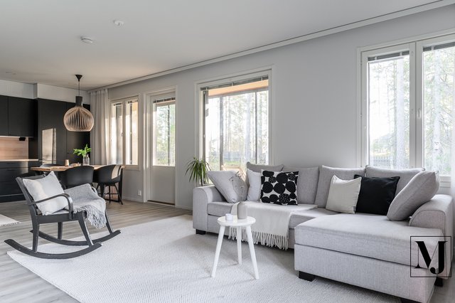 Asunto on valmistunut vuonna 2023 ja sen kunto on uuden veroinen. Tässä kodissa on valoisa ja avara pohjaratkaisu, joka takaa mukavan asumisen. Suuret ikkunat tuovat runsaasti luonnonvaloa ja tarjoavat kauniit näkymät takana olevaan hoidettuun metsään.