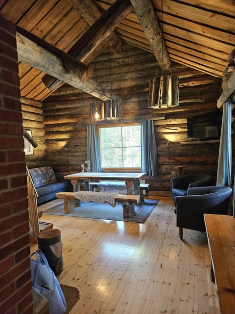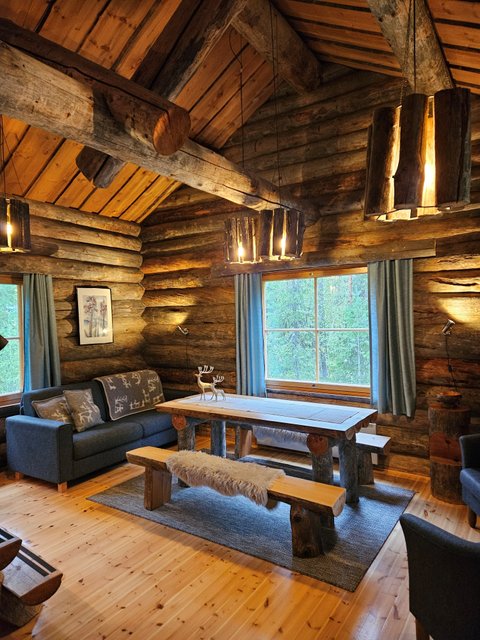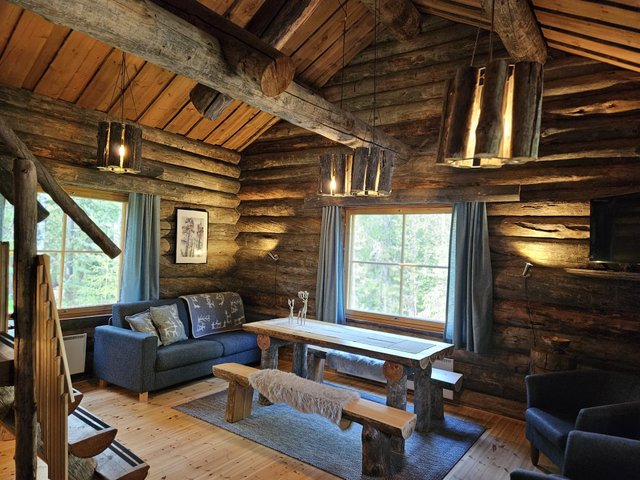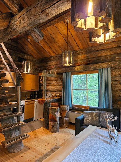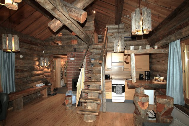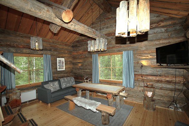 Huoneistossa on tilava tupa, jossa voit nauttia takkatulen lämmöstä kylminä talvi-iltoina. Korkeat huoneet luovat avaruutta ja valoa, ja luonnonläheinen puu- ja hirsipintojen käyttö sisustuksessa korostaa Lapin tunnelmaa. Keittiö on varustettu kaikilla moderneilla mukavuuksilla, mikä tekee ruoanlaitosta vaivatonta.