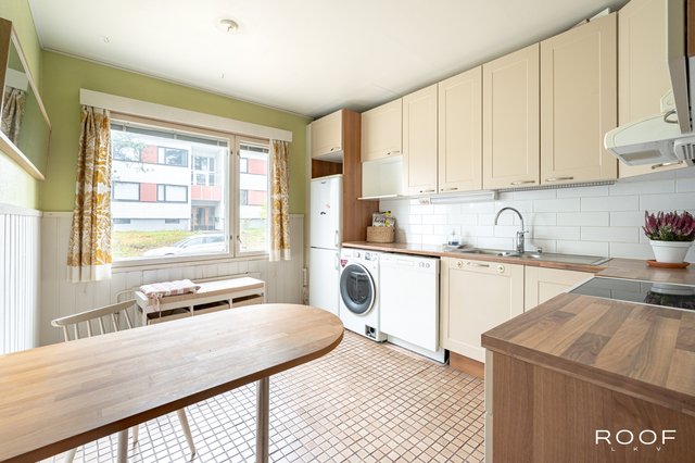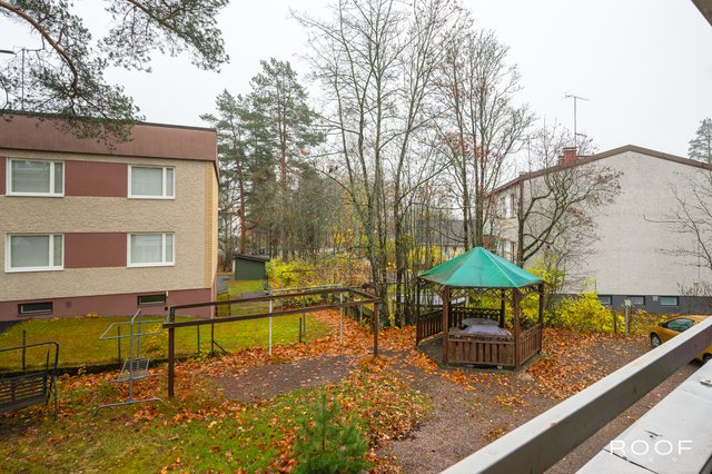 - Oma puistomainen tontti, asunnolla on oikeus sähkötolpalliseen autopaikkaan. Viemärit ovat sukitettu 2017. Yhtiö on velaton. Global Connect valokuitu 2025. Asunnolle on valmis asennuspaikka lämpöilmapumpulle. Yhtiön tiloissa on sauna, pyöräkellari, kuivaushuone pyykille, paljon säilytystilaa ja pieni kuntoiluhuone. Yhteisten tilojen siivous tilataan siivousyrittäjältä. Parkkipaikka aurataan talvisin isännöitsijän palvelun kautta. Rauhalliset asukkaat ja naapurusto. Päätyhuoneistossa on kaunis ja viihtyisä keittiö hyvällä määrällä kaappitilaa ja käytännöllisellä laattalattialla. Laatoitus myös eteisessä, helpottaa puhtaanapitoa vaikkapa lemmikkieläinten kanssa. Olohuone, makuuhuone ja äänieristetty harjoitushuone on päällystetty lämpimällä korkkilattialla. Olohuone on tilava. Koko seinän parveke. Ikkunoissa on sälekaihtimet. Musiikkihuone esim. laulajalle, soittajalle tai mediatyöntekijälle. Äänieristetty huone on rakennettu kelluvalla rakenteella huone huoneen sisälle. Huoneeseen on rakennettu kevyt sähköinen ilmanvaihto. Musiikkihuone täytyy kuitenkin välillä tuulettaa oven avauksella. Äänieristetty huone on suhteellisen helposti purettavissa ja otettavissa normaaliin asuinkäyttöön.