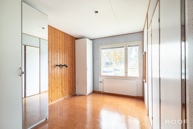 - 1. Makuuhuone. Seinämateriaali: maali, tapetti. Lattiamateriaali: korkki. 2. Makuuhuone, äänieristetty ns. kelluva työhuone. Seinämateriaali: maali. Lattiamateriaali: korkki.
