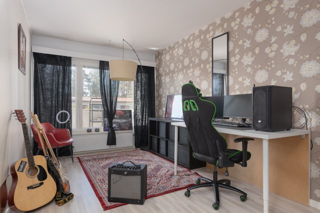 - Varustus: Kaapisto, Antennipistorasia nro2. Seinämateriaali: Tapetti Lattiamateriaali: Laminaatti Makuuhuone 2 Varustus: Kaapisto Seinämateriaali: Tapetti Lattiamateriaali: Laminaatti Makuuhuone 3 Varustus: Kaapisto Seinämateriaali: Tapetti Lattiamateriaali: Laminaatti Makuuhuone 4 Varustus: Kaapisto Seinämateriaali: Tapetti Lattiamateriaali: Laminaatti
