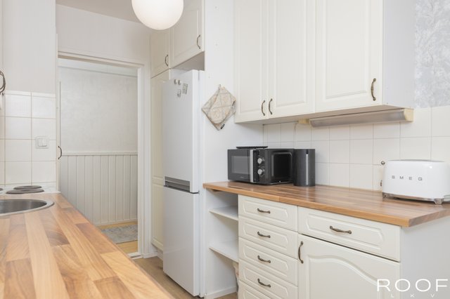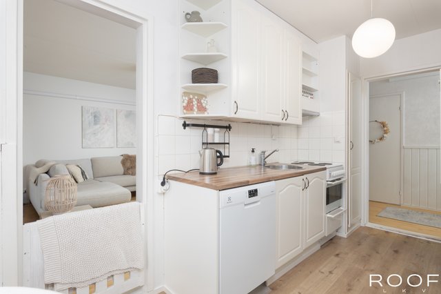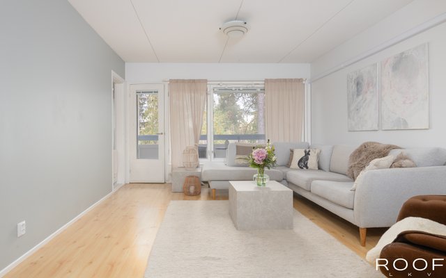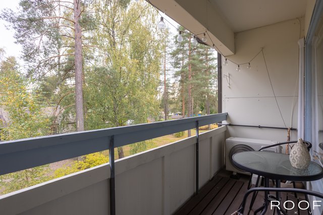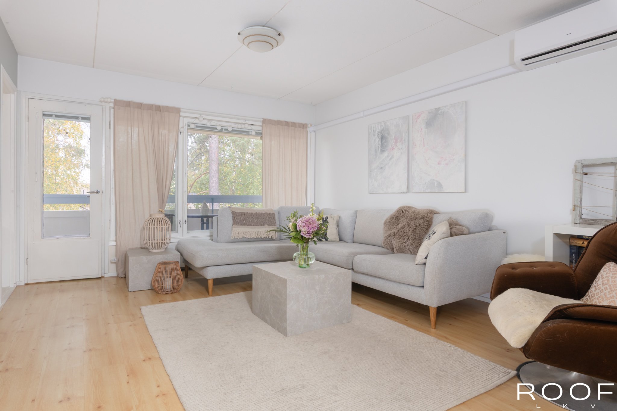 Olohuoneessa on ilmalämpöpumppu ja käynti parvekkeelle, josta avautuu vehreä näkymä pihapiiriin. Keittiö on toimiva ja makuuhuoneissa on runsaasti kaappitilaa. Kylpyhuoneessa on paikka pesukoneelle. Huoneistoa on pintaremontoitu vuosien varrella. Lämmitysmuotona on kaukolämpö.
