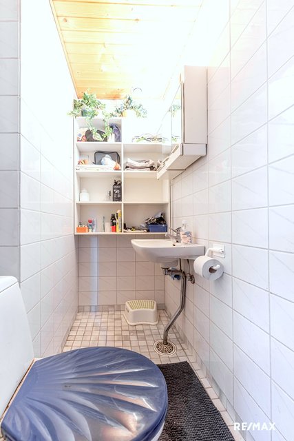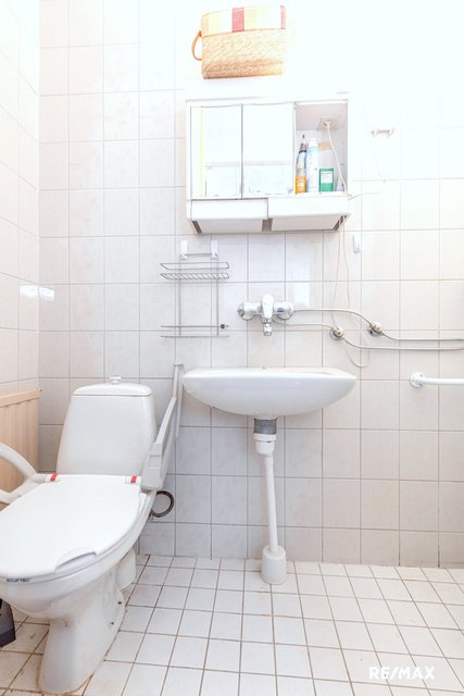 - WC-istuin, pesuallas, peilikaappi, ja suihku